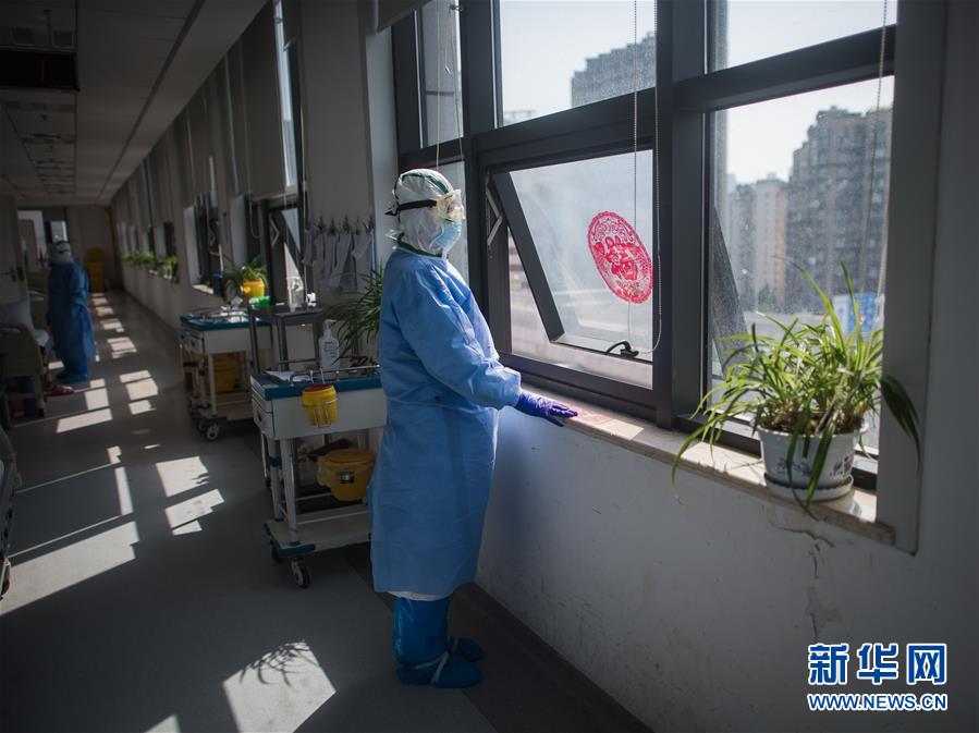 3月19日,在武漢市肺科醫(yī)院隔離病房,醫(yī)護(hù)人員在窗邊小憩。  新華社記者 肖藝九 攝