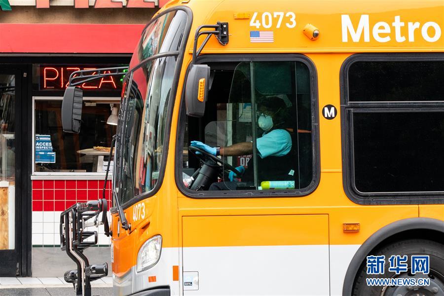 3月20日,在美國(guó)加利福尼亞州洛杉磯,公交車(chē)駕駛員戴著口罩。 新華社發(fā)(錢(qián)衛(wèi)忠攝)