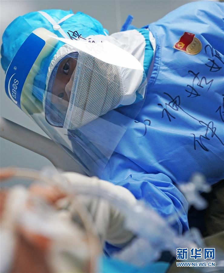 80后護士仲雅為患者進行口腔護理(3月20日攝)。 武漢火神山醫(yī)院重癥醫(yī)學一科的護理團隊共50名護士,其中絕大多數(shù)是80后、90后女性,她們不懼危險,奮戰(zhàn)在抗擊疫情的最前沿“紅區(qū)”。 新華社記者王毓國攝