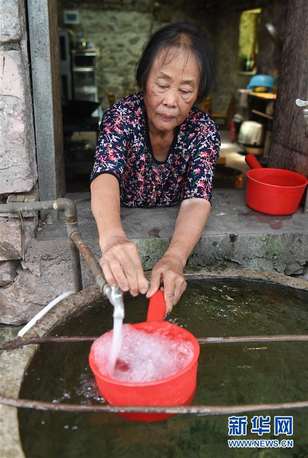 在廣西都安瑤族自治縣龍灣鄉(xiāng)琴棋村琴嶺屯,村民在接從水柜里引來的自來水(2019年7月23日攝)。廣西有近一半貧困人口生活在石漠化地區(qū),涉及數(shù)十個縣區(qū)。這里也是廣西飲水保障程度最低的地區(qū),解決貧困人口飲水問題是廣西脫貧攻堅戰(zhàn)“硬仗中的硬仗”。“十三五”以來,廣西加快實施農(nóng)村飲水安全鞏固提升工程。因地制宜,采取新建、擴建及管網(wǎng)延伸等多種措施,補齊貧困地區(qū)水利薄弱短板,進一步提升石漠化地區(qū)群眾飲水安全保障水平,助推脫貧攻堅。新華社記者陸波岸攝