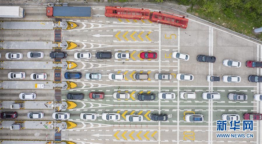 3月24日,在武漢西高速收費(fèi)站交通卡點(diǎn),返漢車輛排隊(duì)等候入城(無人機(jī)照片)。當(dāng)日,湖北省新冠肺炎疫情防控指揮部發(fā)布通告說,湖北省除武漢市以外地區(qū),將于3月25日起解除離鄂通道管控,武漢市將于4月8日起解除離漢離鄂通道管控措施。隨著近日武漢部分企業(yè)逐漸復(fù)產(chǎn)復(fù)工,進(jìn)入武漢的返城務(wù)工人員陸續(xù)增多,車輛在武漢西高速收費(fèi)站交通卡點(diǎn)有序排隊(duì)返回武漢。工作人員對返城人員檢查體溫,并核查證明健康的“綠碼”和身份證后放行。新華社記者才揚(yáng)攝