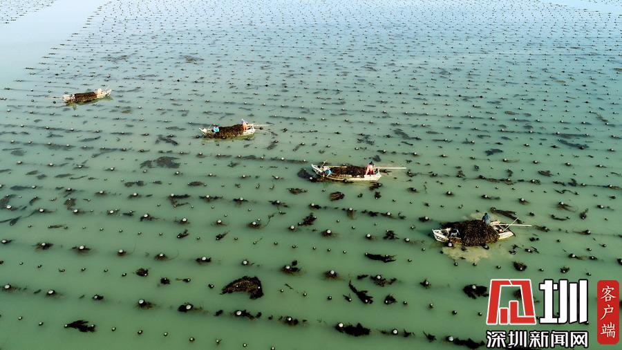 2020年3月29日,山東威海,榮成市愛連灣海水養(yǎng)殖區(qū)域,養(yǎng)殖工人開始收割海帶。