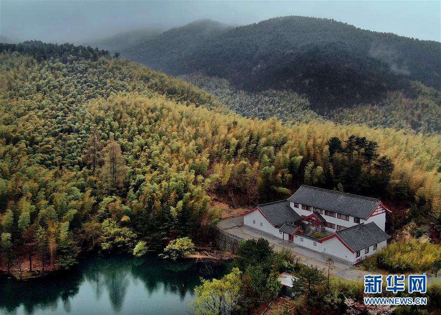 這是3月29日拍攝的云霧繚繞的黃柏山國家森林公園景色(無人機照片)。位于大別山深處的河南省商城縣黃柏山國家森林公園,在一場春雨后,云霧繚繞,宛若仙境。新華社記者李安攝