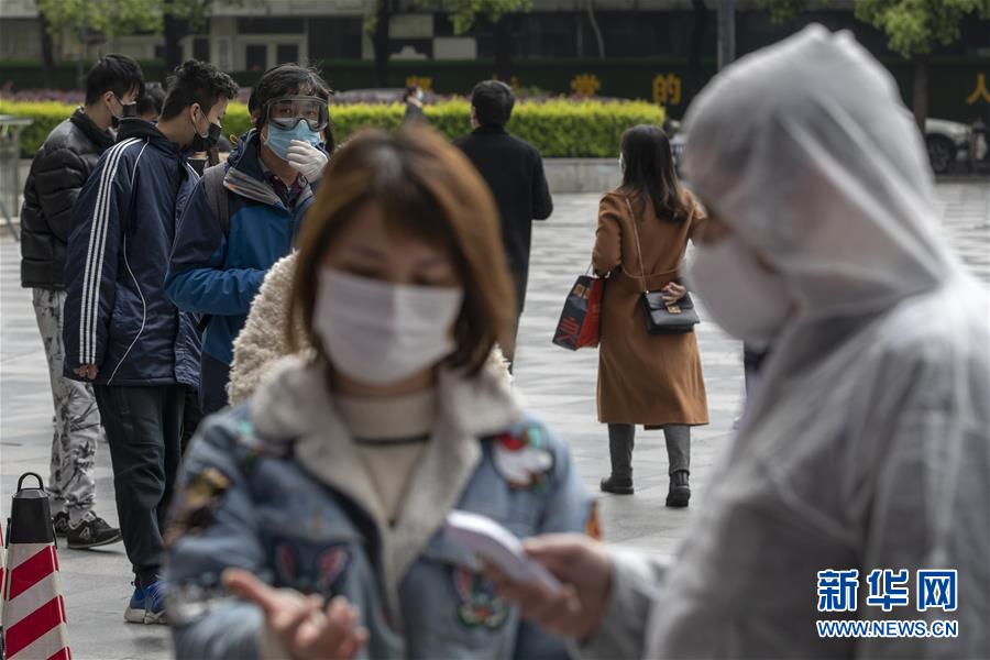 3月30日,顧客排隊進(jìn)入武商國際廣場。當(dāng)日,武漢市多家商場開門迎客。新華社記者費茂華攝
