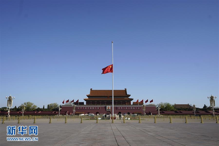 4月4日,北京天安門(mén)廣場(chǎng)降下半旗,表達(dá)對(duì)抗擊新冠肺炎疫情斗爭(zhēng)犧牲烈士和逝世同胞的深切哀悼。新華社記者 鞠煥宗 攝