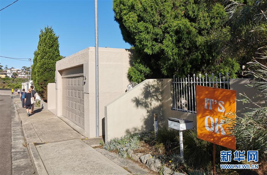 這是4月4日在澳大利亞悉尼費(fèi)爾萊特社區(qū)拍攝的標(biāo)語牌。新華社記者白雪飛攝