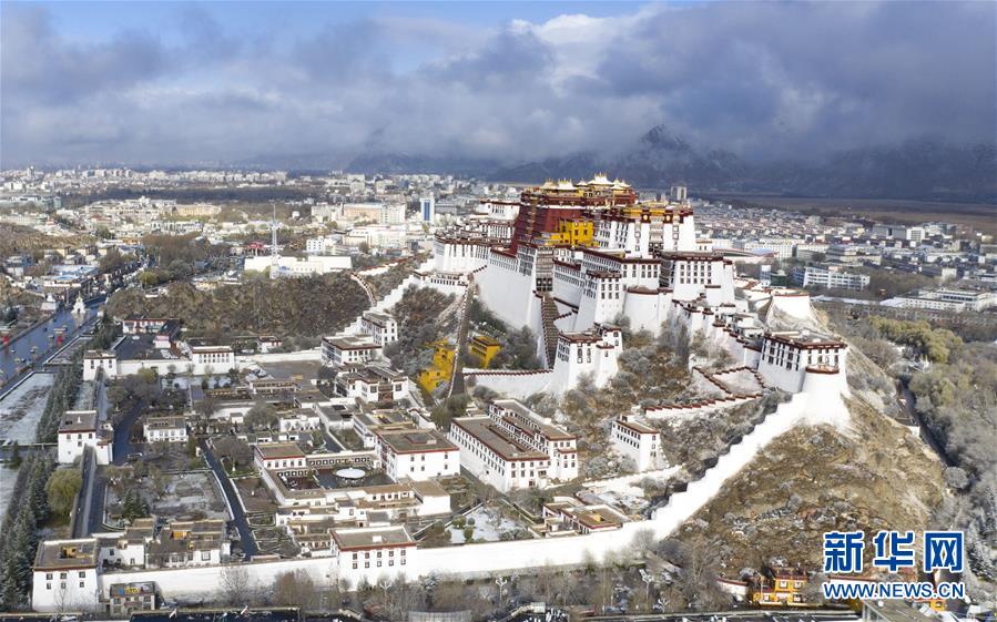 4月5日拍攝的布達(dá)拉宮雪景(無人機(jī)照片)。新華社記者普布扎西攝