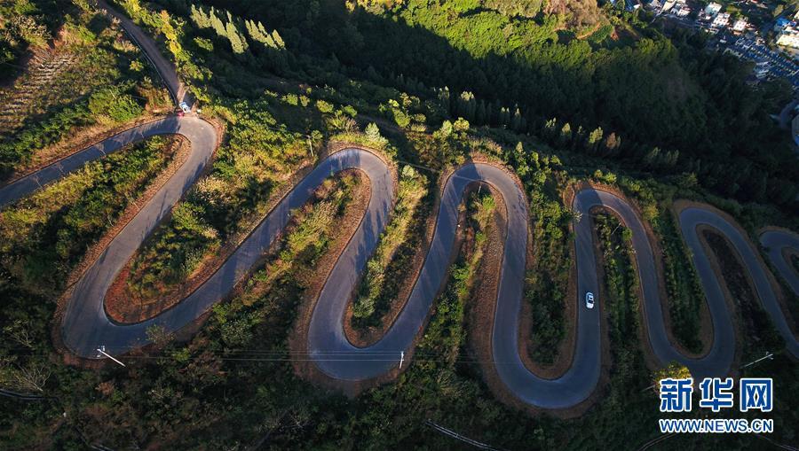 云南宜良“68道拐”位于云南省昆明市宜良縣,是宜良縣城通往靖安哨村的盤山公路。公路依山梁而修建,蜿蜒曲折,6.3公里的路程共有68道彎。新華社記者楊牧源攝