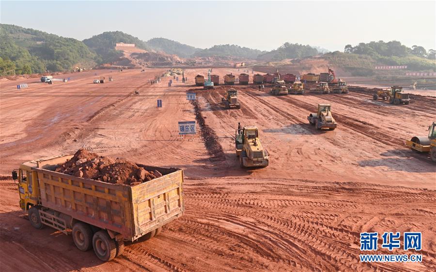普洱車站施工現(xiàn)場正在進(jìn)行路基土方填筑施工(4月12日攝)。新華社記者秦晴攝