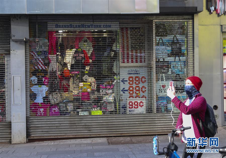 3月21日,在美國紐約時報廣場,一家紀念品商店關閉。新華社記者王迎攝