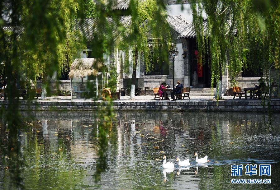 4月13日,游客在濟南百花洲歷史文化街區(qū)休閑。新華社記者王凱攝