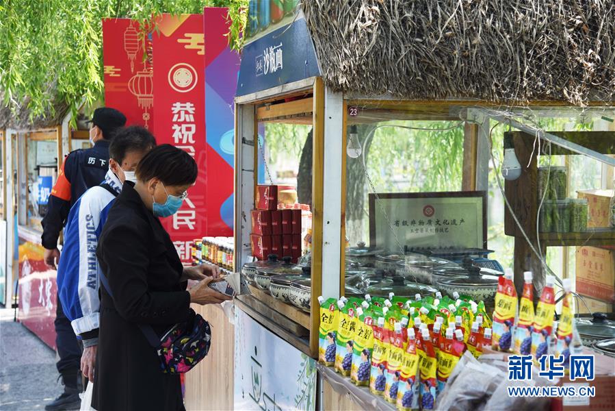 4月13日,游客在濟南百花洲歷史文化街區(qū)購買文創(chuàng)產(chǎn)品。新華社記者王凱攝