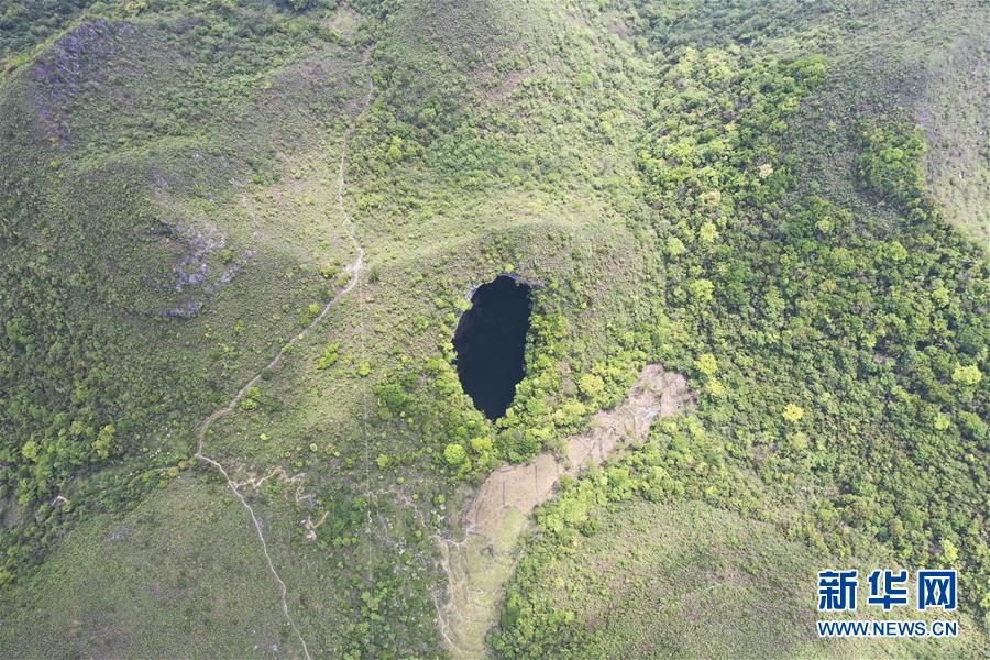 這是4月19日拍攝的中國樂業(yè)—鳳山世界地質公園內的天坑(無人機照片)。新華社記者曹祎銘攝