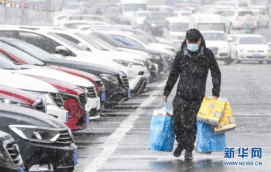 4月21日,長春市民冒雪出行。當日,吉林省多地迎來降雪天氣。新華社記者許暢攝