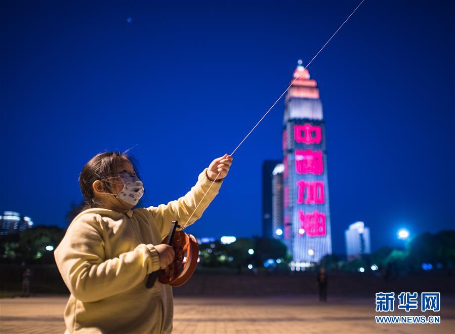 4月12日,小朋友在漢口江灘放風箏。新華社記者肖藝九攝