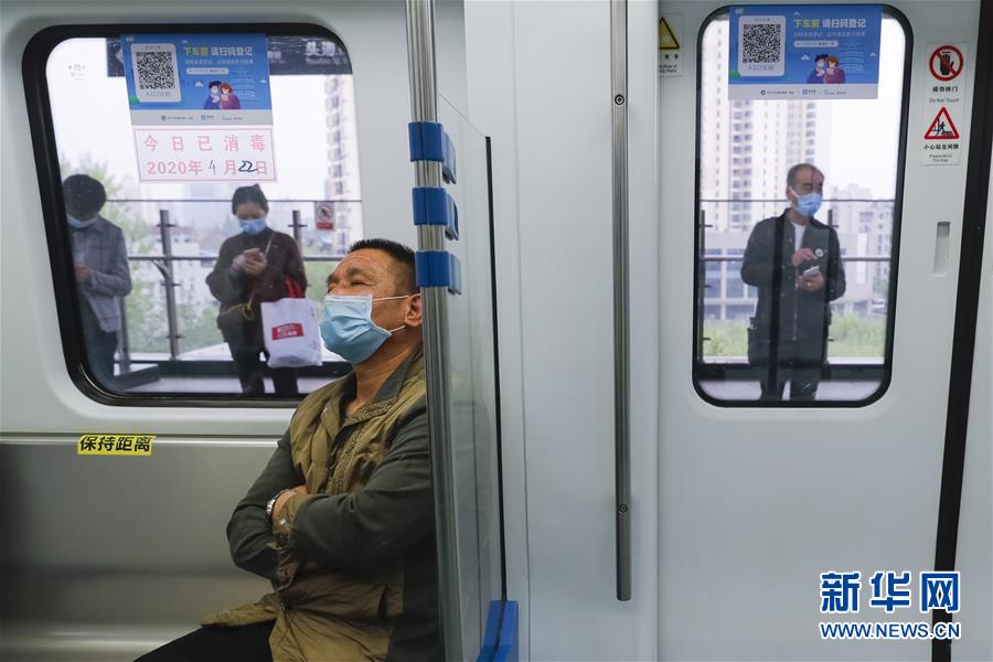 4月22日,乘客乘坐武漢軌道交通一號(hào)線(xiàn)出行。為建立與經(jīng)濟(jì)社會(huì)發(fā)展和疫情防控需要相適應(yīng)的運(yùn)輸服務(wù)保障機(jī)制,保障市民出行需求,從4月22日起,武漢城市公共交通有序恢復(fù)全線(xiàn)網(wǎng)運(yùn)營(yíng)。新華社記者沈伯韓攝