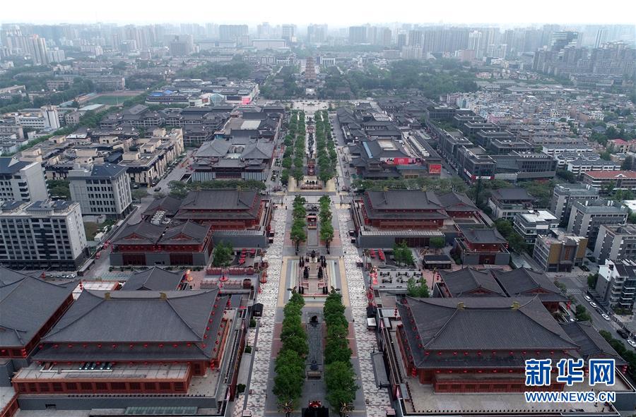 4月23日拍攝的西安大唐不夜城步行街(無人機(jī)照片)。 新華社記者 張博文 攝