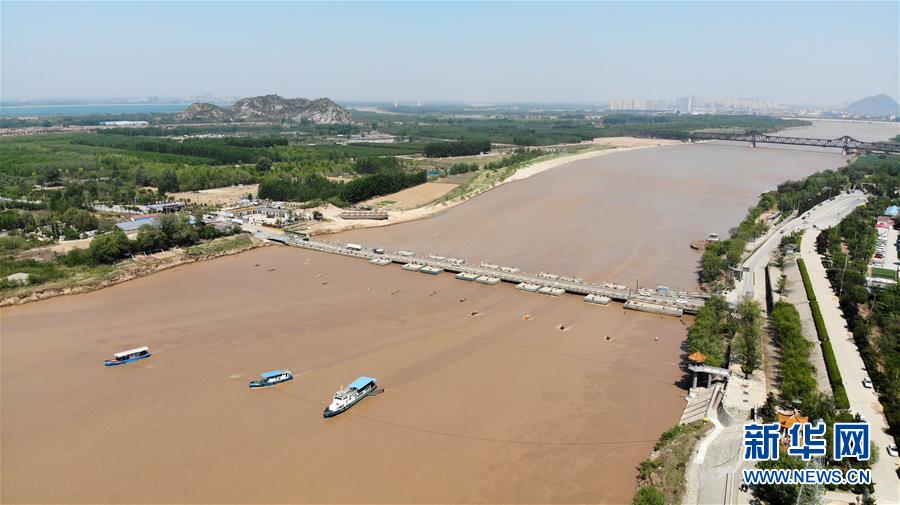 4月24日在山東濟(jì)南拍攝的黃河景色(無(wú)人機(jī)照片)。春暖花開(kāi)的時(shí)節(jié),濟(jì)南黃河兩岸春風(fēng)送綠,大河、綠植與城市構(gòu)成了一幅春的畫卷。新華社記者王凱攝