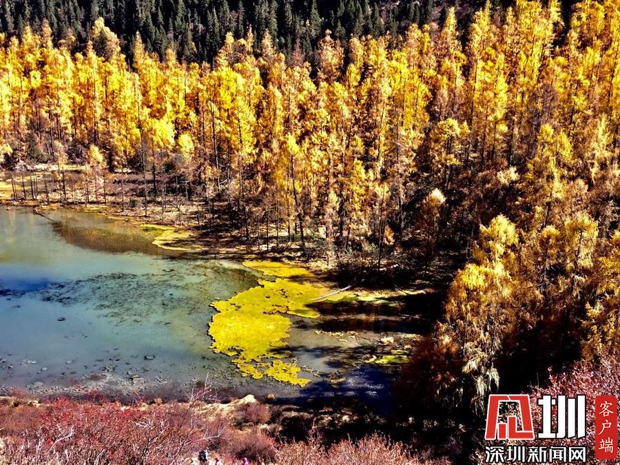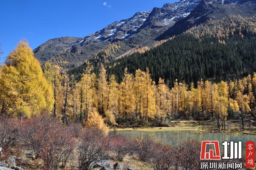 溝里有大片的落葉松、杜鵑和云杉林,雪山、海子、濕地、河流等景觀應(yīng)有盡有,唯獨沒有公路,只能沿木棧道徒步游覽。李仁奇攝