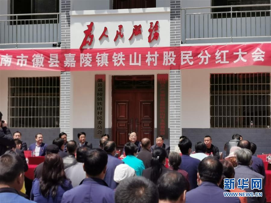 4月24日拍攝的甘肅省隴南市徽縣鐵山村公開分紅大會現(xiàn)場。新華社記者張新新攝