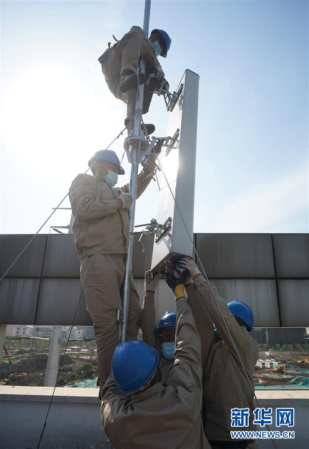 4月25日,在南京220千伏城南河變電站屋頂,工人在架設(shè)4G設(shè)備。當(dāng)日,三大通信運(yùn)營商的2座5G、3座4G基站建設(shè)工作在南京220千伏城南河變電站屋頂有序展開。在變電站內(nèi)建設(shè)基站可有效利用電網(wǎng)資源,縮短建設(shè)周期,節(jié)約建設(shè)成本。新華社記者季春鵬攝