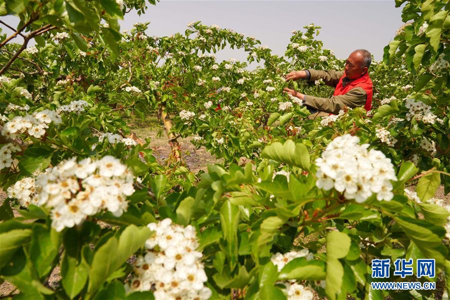 4月26日,農(nóng)民在河北省清河縣馬屯紅果種植專業(yè)合作社的山楂種植區(qū)內(nèi)為果樹疏花。4月下旬以來,河北省清河縣2萬余畝山楂樹競相開花,成為一道亮麗的風(fēng)景線。清河縣年產(chǎn)山楂7.5萬余噸,山楂種植已成為當?shù)剞r(nóng)民的重要增收途徑。新華社記者牟宇攝