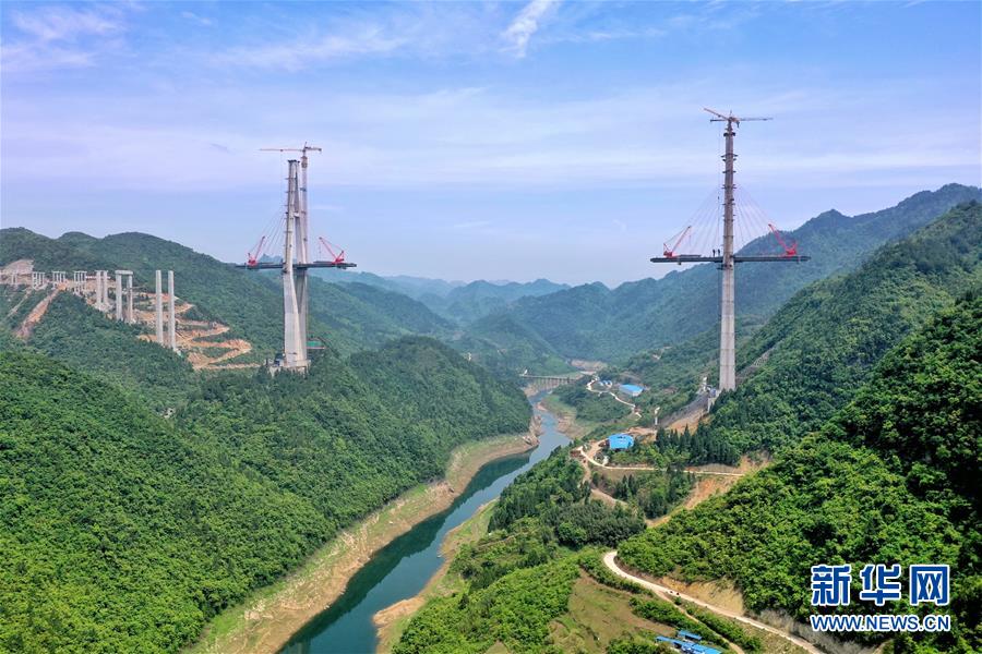 這是建設(shè)中的遵余高速湘江大橋(4月26日攝,無人機照片)。近日,由中鐵廣州局承建的貴州遵余高速湘江大橋工程在做好疫情防控的同時,全力恢復(fù)生產(chǎn)建設(shè)。目前工程進展順利,正在進行主橋鋼梁架設(shè),預(yù)計將于8月底合龍。據(jù)了解,遵余高速湘江大橋橋梁全長1700余米,主跨560米。新華社記者劉續(xù)攝