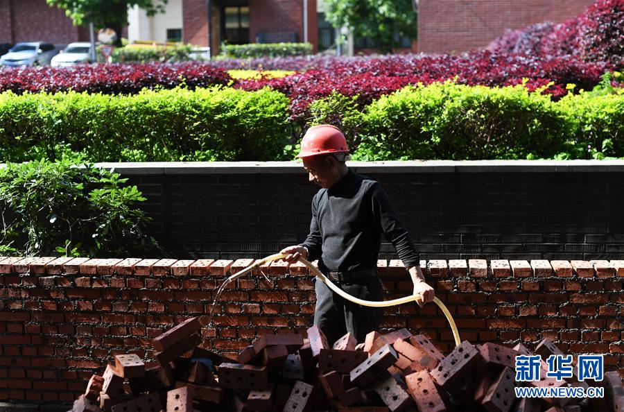 4月26日,工人在渝中區(qū)大溪溝街道雙鋼路社區(qū)改造提升項目施工現(xiàn)場作業(yè)。近段時間以來,重慶市渝中區(qū)大溪溝街道加快推進轄區(qū)內(nèi)老舊小區(qū)改造提升工作,從環(huán)境衛(wèi)生、房屋管理及養(yǎng)護、安防及車輛管理、綠化管理等方面進行綜合改造提升,以增強社區(qū)居民的幸福感、獲得感、安全感。新華社記者王全超攝