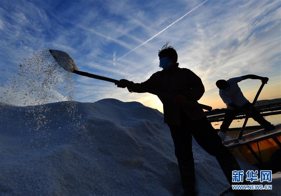 4月27日,莆田鹽場(chǎng)的工人在勞作。莆田鹽場(chǎng)位于福建省莆田市秀嶼區(qū)東嶠鎮(zhèn),辛勤勞作的鹽工、縱橫交錯(cuò)的曬鹽池,共同構(gòu)成如畫(huà)的風(fēng)景。新華社記者魏培全攝