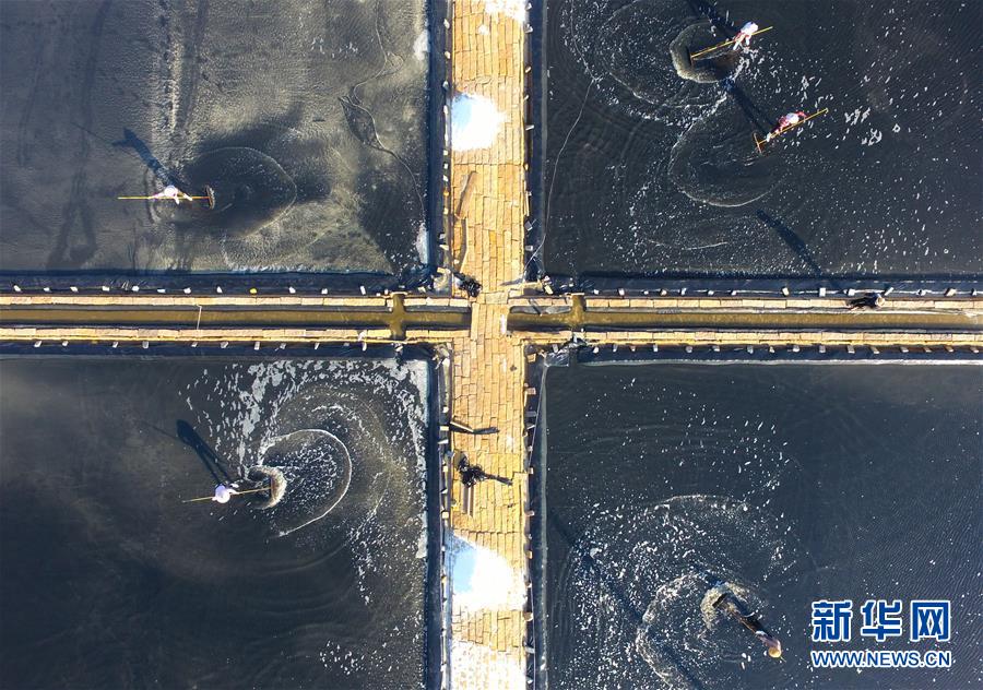 4月27日,莆田鹽場(chǎng)的工人在曬鹽池里忙碌(無(wú)人機(jī)照片)。莆田鹽場(chǎng)位于福建省莆田市秀嶼區(qū)東嶠鎮(zhèn),辛勤勞作的鹽工、縱橫交錯(cuò)的曬鹽池,共同構(gòu)成如畫(huà)的風(fēng)景。新華社記者魏培全攝