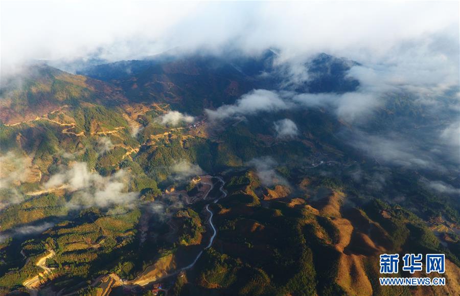 這是云霧繚繞的堯告村(無人機(jī)照片,2019年1月18日攝)。新華社記者黃孝邦攝