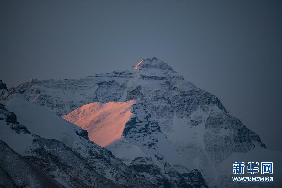 日出時分,朝霞映照珠峰(4月15日攝)。新華社記者孫非攝