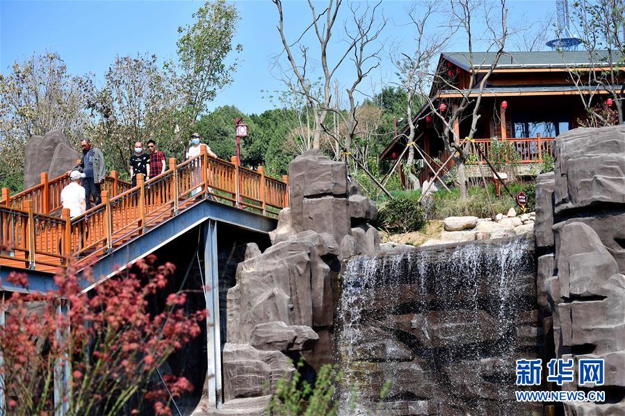 5月1日,游客在河南省鶴壁市淇濱區(qū)鉅橋鎮(zhèn)崗坡村渝派火鍋樂園里游玩。  新華社記者馮大鵬攝