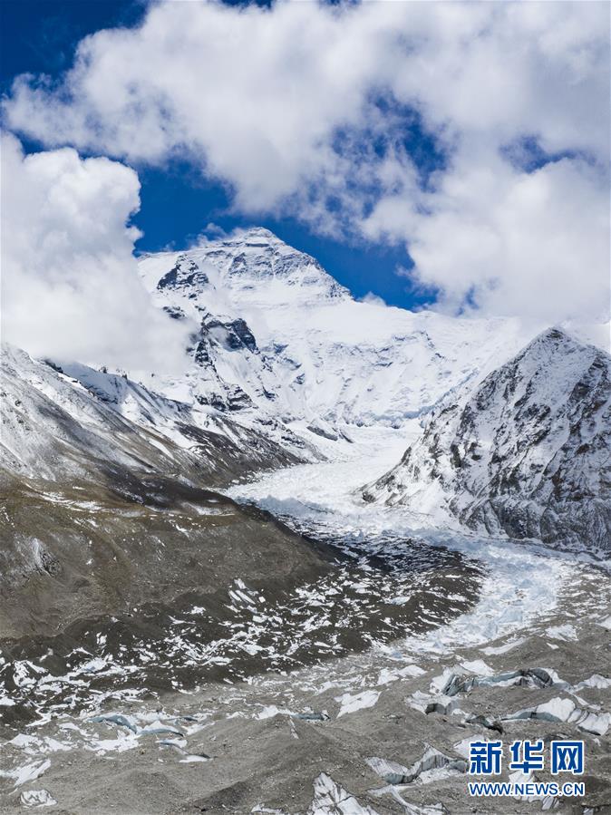 位于珠穆朗瑪峰腳下海拔5400米左右的中絨布冰川(4月30日攝,無人機(jī)照片)。位于珠穆朗瑪峰腳下海拔5400米左右的中絨布冰川,巍峨壯觀,冰塔林托起世界最高峰,讓人嘆為觀止。新華社記者普布扎西攝