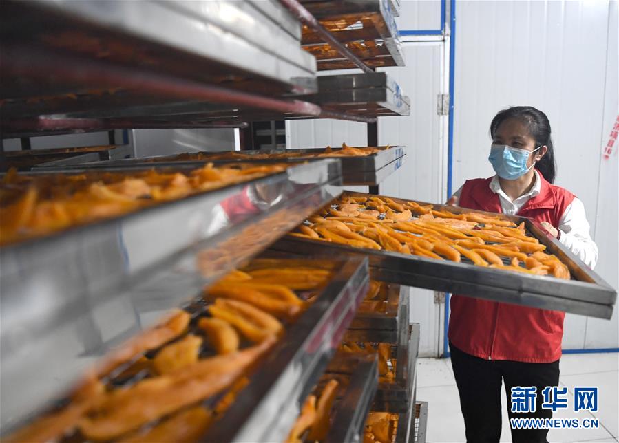 唐莉在平樂縣張家鎮(zhèn)老埠村合作社查看紅薯干生產情況(5月4日攝)。新華社記者周華攝
