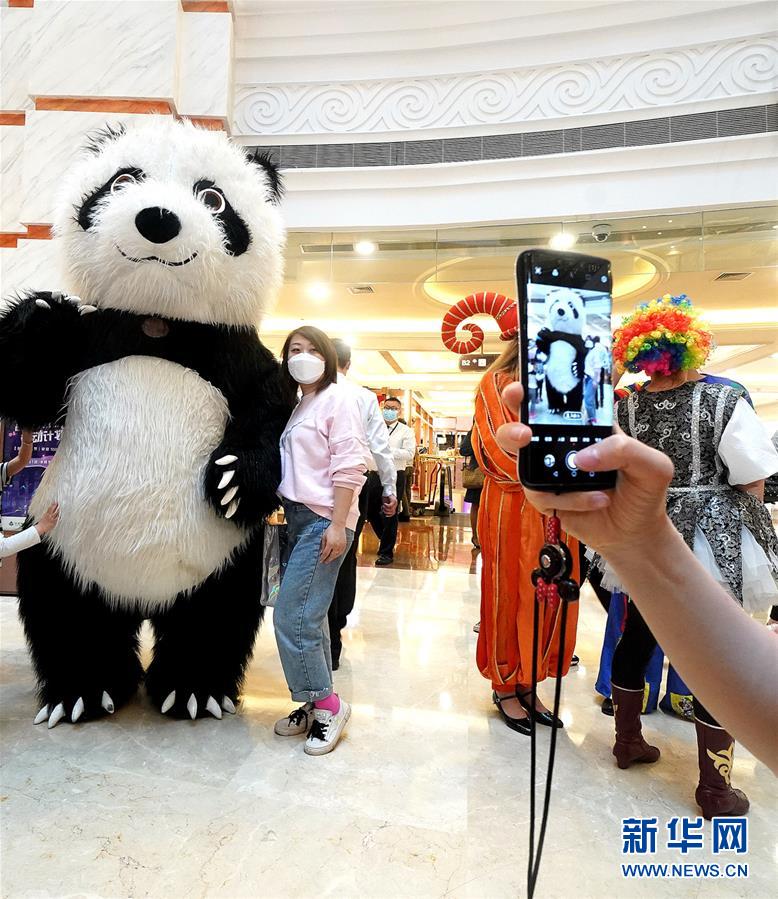 5月5日,顧客在上海環(huán)球港商場與大熊貓人偶合影。5月4日晚,上海首次啟動大規(guī)模商業(yè)促銷活動“五五購物節(jié)”,多家在線新經濟企業(yè)參與,通過線上流量優(yōu)勢反哺線下賣場,實現(xiàn)電商與實體零售融合互動,激活消費潛力、驅動消費復蘇。據(jù)“上海發(fā)布”的消息,截至5日14時12分,“五五購物節(jié)”上海地區(qū)消費支付總額已超100億元。新華社記者陳飛攝
