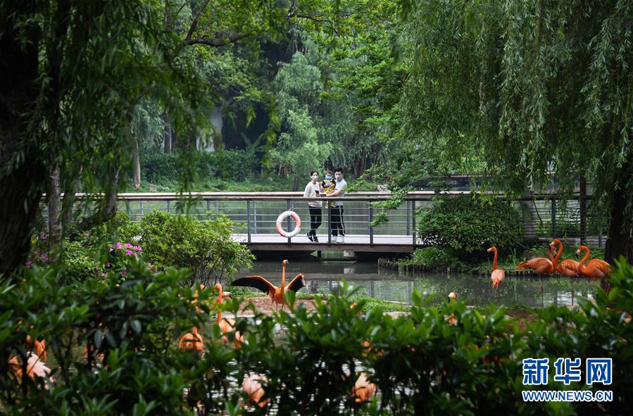 游客在武漢動(dòng)物園觀看火烈鳥(niǎo)(4月22日攝)。 新華社記者 程敏 攝