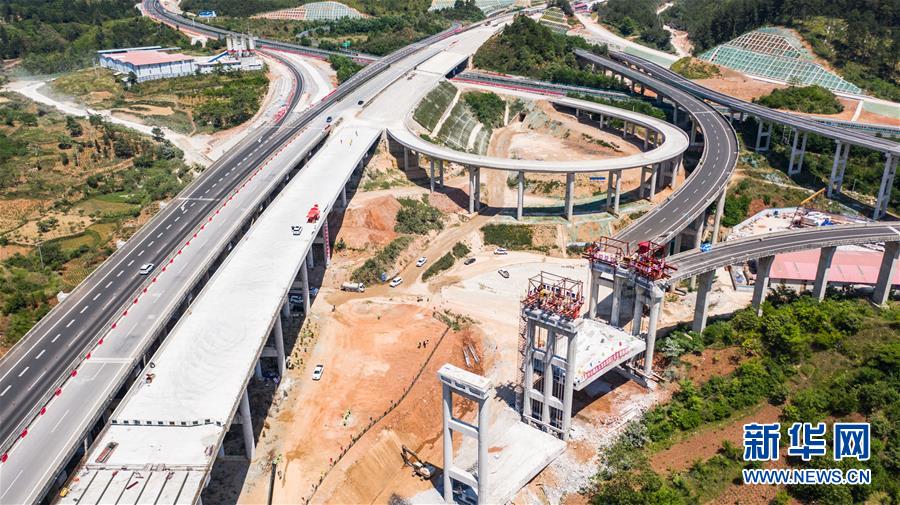 都安高速改擴(kuò)建路段的惠水樞紐(無(wú)人機(jī)照片,5月9日攝)。 新華社記者 陶亮 攝