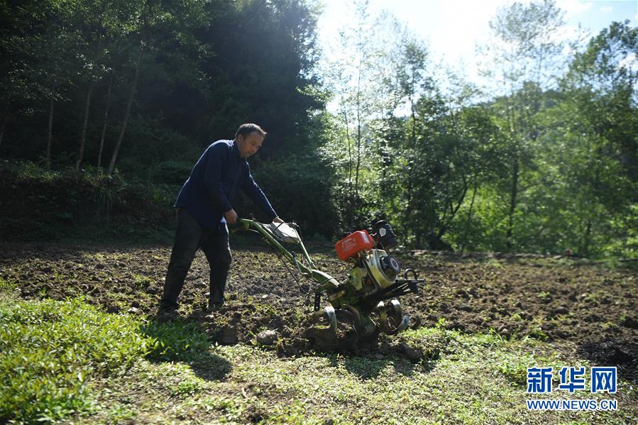 施六金在田間翻耕(4月24日攝)。1973年出生于十八洞村的施六金,由于父親患病很早就放棄學(xué)業(yè)和母親扛起了家庭的重?fù)?dān)。為了生活,他還曾遠(yuǎn)去東南亞打工。2015年,看到家鄉(xiāng)的變化,施六金回到村里開起了農(nóng)家樂,年度家庭人均純收入也從2014年的1715元增長到了2019年的35696元。2018年,施六金與心愛的人組建了家庭。今年初,施六金與愛人迎來了一個大胖小子?!白鋈俗鍪乱没貓蠛透卸?。”施六金給剛出生的兒子取名施澤恩。新華社記者薛宇舸攝