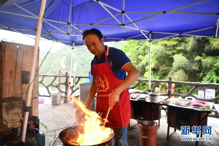 施六金在自家開的農(nóng)家樂為客人準(zhǔn)備午餐(4月25日攝)。1973年出生于十八洞村的施六金,由于父親患病很早就放棄學(xué)業(yè)和母親扛起了家庭的重?fù)?dān)。為了生活,他還曾遠(yuǎn)去東南亞打工。2015年,看到家鄉(xiāng)的變化,施六金回到村里開起了農(nóng)家樂,年度家庭人均純收入也從2014年的1715元增長到了2019年的35696元。2018年,施六金與心愛的人組建了家庭。今年初,施六金與愛人迎來了一個大胖小子。“做人做事要懂得回報和感恩?!笔┝鸾o剛出生的兒子取名施澤恩。新華社記者薛宇舸攝