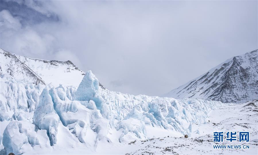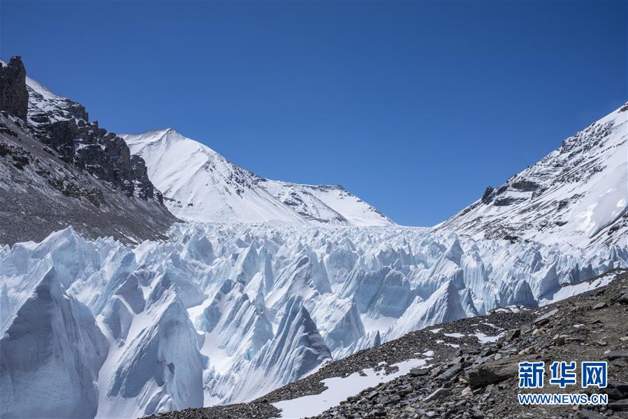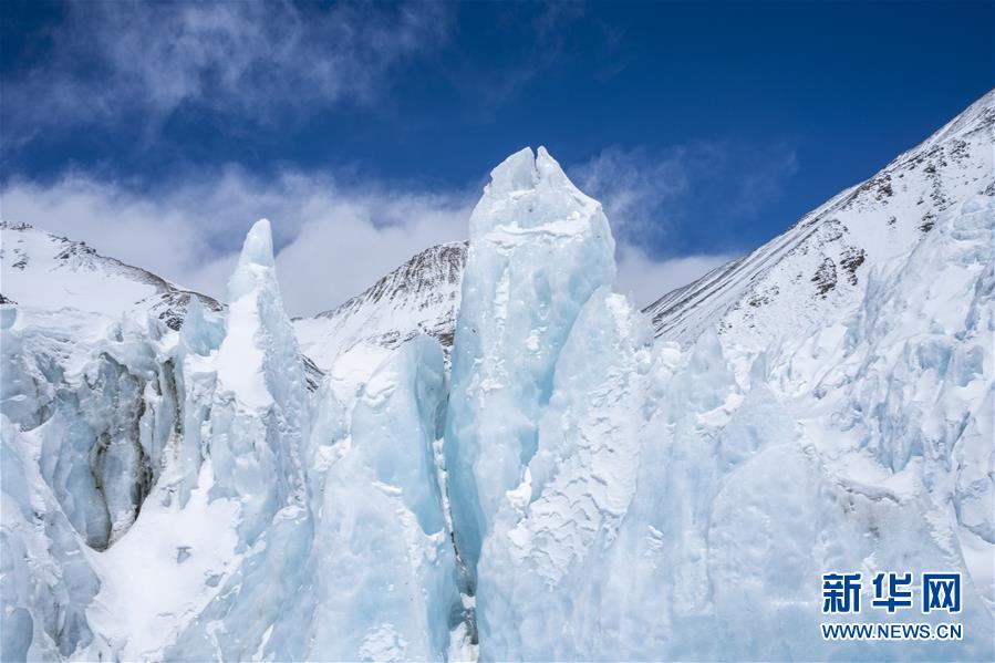 珠峰海拔5800米至海拔6500米的冰塔林(5月9日攝)。從海拔5800米的珠峰過(guò)渡營(yíng)地到海拔6500米的前進(jìn)營(yíng)地,冰塔林沿山谷排列,蔚為壯觀。新華社記者孫非攝