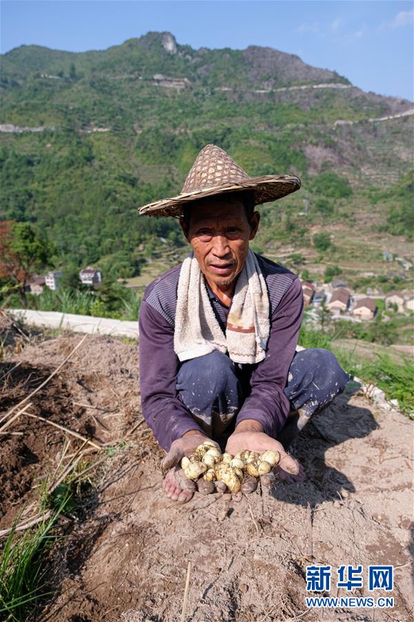 5月12日,青田縣巨浦鄉(xiāng)西坑村的村民在梯田收獲中藥貝母。新華社記者徐昱攝