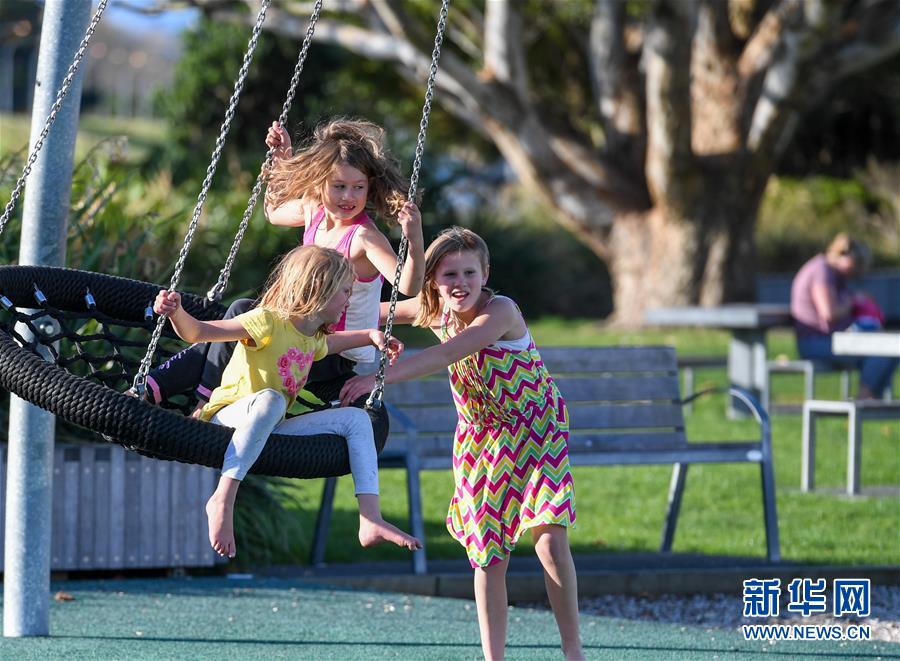 5月14日,孩子們在首都惠靈頓郊外公園的游樂場玩耍。當天是新西蘭從新冠疫情防控響應(yīng)三級下調(diào)到二級的第一天,經(jīng)濟活動全面重啟,公園等公共設(shè)施首次重新開放,中小學生將于5月18日全面返校復(fù)課。新華社記者郭磊攝