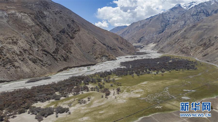 珠穆朗瑪峰國(guó)家級(jí)自然保護(hù)區(qū)內(nèi)的沙棘林和濕地(5月16日攝,無(wú)人機(jī)照片)。新華社記者普布扎西攝