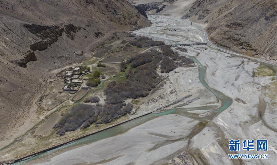 珠穆朗瑪峰國家級自然保護區(qū)內的村莊與濕地(5月16日攝,無人機照片)。新華社記者普布扎西攝
