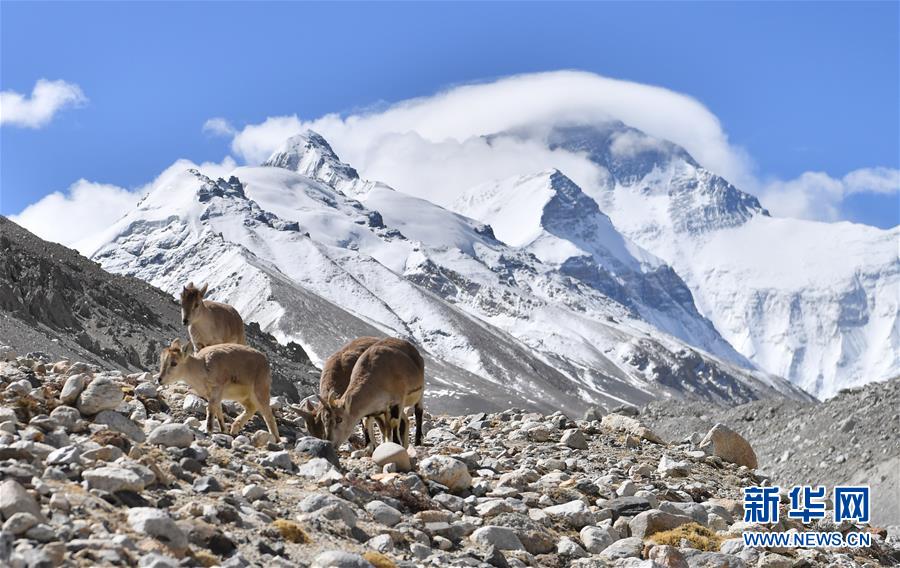 棲息在珠穆朗瑪峰國家級自然保護(hù)區(qū)內(nèi)的巖羊(5月8日攝)。新華社記者晉美多吉攝
