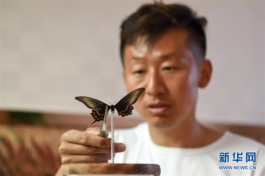 在吉木薩爾縣七彩蝶園,關(guān)富云在制作蝴蝶標(biāo)本(5月15日攝)。走進(jìn)關(guān)富云的七彩蝶園,游客不僅可以近距離接觸翩翩起舞的蝴蝶,還可以欣賞蝴蝶破繭成蝶的蛻變過程。今年34歲的關(guān)富云用9年的時(shí)間實(shí)現(xiàn)了自己的“蝴蝶夢”,完成美麗的“蝶變”。關(guān)富云家住新疆吉木薩爾縣北地社區(qū)。2011年,他看到一檔農(nóng)業(yè)致富節(jié)目,萌生了養(yǎng)殖蝴蝶的想法。關(guān)富云說,當(dāng)時(shí)蝴蝶養(yǎng)殖還是一種新興產(chǎn)業(yè),他抱著試一試的想法,在海南學(xué)習(xí)了3個(gè)月蝴蝶養(yǎng)殖,帶回100多個(gè)蝶蛹在家試驗(yàn)養(yǎng)殖。蝴蝶的生存周期短,在當(dāng)?shù)仞B(yǎng)殖需要克服溫度、濕度、病蟲害等問題。關(guān)富云不斷嘗試,越挫越勇,羽化成功的蝴蝶在2014年終于突破了萬只。蝴蝶的色彩艷麗,活體蝴蝶可用于婚慶、開業(yè)慶典等活動(dòng)中放飛,可以取得很好的收益。但它的生命短暫,如何才能最大化蝴蝶的效益,留住它的美呢?關(guān)富云動(dòng)起了心思,開始嘗試制作標(biāo)本和蝶翅畫?!昂宛B(yǎng)殖不同,做蝶翅畫是個(gè)創(chuàng)作的過程,從選擇標(biāo)本到粘貼,每一步都要突出美感。”關(guān)富云介紹,一幅色彩明艷、栩栩如生的蝶翅畫耗時(shí)多日才能完成。如今,關(guān)富云的活體蝴蝶和蝶翅畫通過線上線下銷售,產(chǎn)品還銷往北京、廈門等地。關(guān)富云的蝴蝶產(chǎn)品得到市場的認(rèn)可,政府也對(duì)他給予大力支持。2019年,吉木薩爾縣在泉子街鎮(zhèn)建起蝴蝶觀賞園,吸引了不少游客到此參觀游玩。對(duì)于未來的發(fā)展,關(guān)富云信心滿滿,“我希望把蝴蝶產(chǎn)業(yè)發(fā)展到天山南北,讓人們?cè)诤涞亩疽材苡^賞到蝴蝶,并且讓更多人參與其中,致富脫貧”。新華社記者丁磊攝