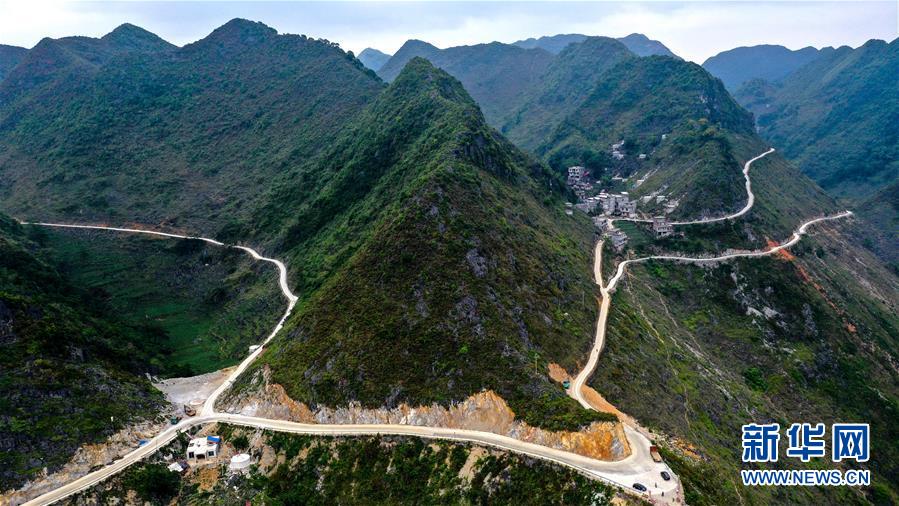 這是大化瑤族自治縣七百弄鄉(xiāng)天上人間景點(diǎn)附近的盤(pán)山公路(5月13日攝,無(wú)人機(jī)照片)。新華社記者曹祎銘攝