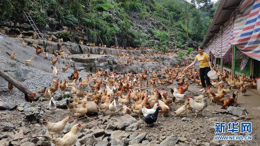 大化瑤族自治縣雅龍鄉(xiāng)勝利村一名群眾在喂養(yǎng)“七百弄雞”(2019年9月11日攝)。新華社記者張愛(ài)林?jǐn)z