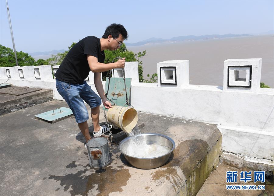 5月20日,在寧波七里嶼,葉家第五代燈塔工葉超群從水窖內打水。為了克服淡水短缺的問題,燈塔工收集雨水存入水窖作為生活用水。